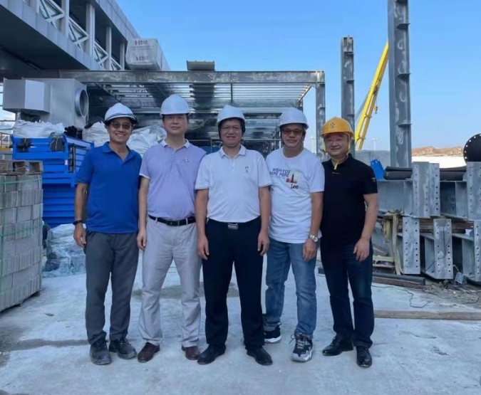施工期间新环环保集团董事长、总裁程鉴昌与项目管理人员合影